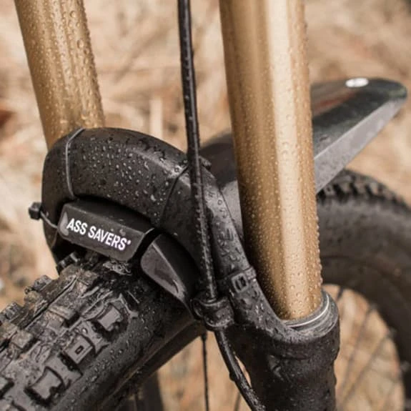 The aim of the Ass Savers Mudder Regular front mudguard is to keep your eyes clear of mud as you speed down the track. It mounts onto the fork with a discreet design and unrivalled efficiency when it comes to keeping the dirt off your face. The design has innovative deflectors that fit round the tyres and can be adjusted so that practically no mud gets past.
