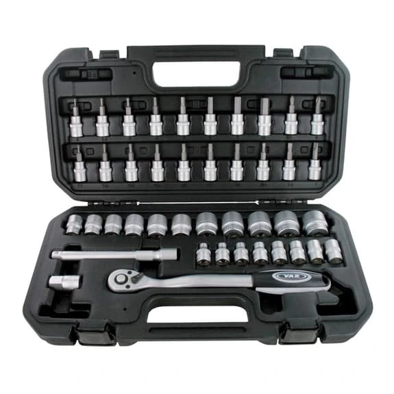 The VAR key kit includes a set of keys for professional ratchet with 42 pieces. All the keys are made of chrome-vanadium hardened steel and chromed, housed in a protective carrying case. Includes a 25 cm long ratchet wrench along with a collection of the most popular hex wrench connections, Torx bits, screwdriver sockets, etc …