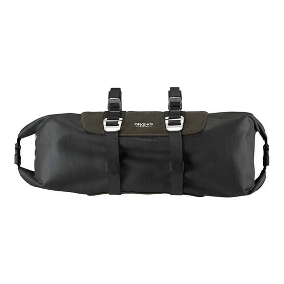 The Brooks England Scape Roll handlebar bag is a bike bag made of two separate elements: a cover and a removable 100% waterproof dry bag with two internal compartments made of lightweight, waterproof materials and weatherproof details (IP64 certified). Specially designed for long distance routes and Bikepacking races, it easily attaches to both low handlebars (road and gravel type) and flat handlebars (MTB). The holster is held in place by two aluminium buckle straps for quick and reliable mounting, with EVA spacers to allow easy cable routing and a better grip. An additional clip is provided to secure the straps and prevent them from loosening. A double daisy chain runs through the pouch for storing larger items.