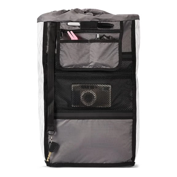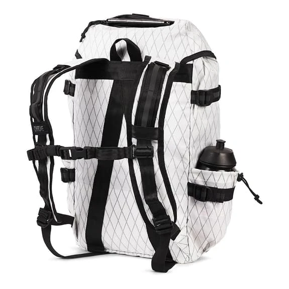 The 25 litre Chrome Tensile Ruckpack is an exploration by the brand to make the lightest and strongest bags possible. It is made from recycled and sustainable TPX and finished with the Truss 5 system for continuous reinforcement. It has a quick access zippered exterior pocket, interior organizational pockets, expandable gusseted pockets for water bottles. Ergonomically designed shoulder strap and sternum strap to distribute the load. It also has a classic hood with an extra secure secondary drawstring and attachment loops for accessories. So far it is the lightest and strongest bag.