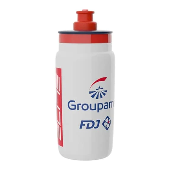 The Elite Fly Groupama-FDJ bottle is the lightest sports bottle available and is used by the best professional World Tour teams. They are exact replicas of the competition bottles used by the fastest cyclists in the world.