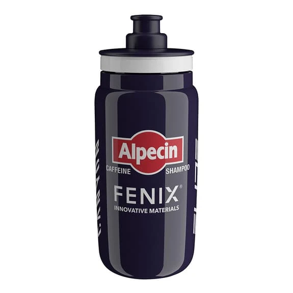 The Elite Fly water bottle is the lightest sports bottle available and is used by the best professional World Tour teams. They are precise replicas of the bottles used in competition by the fastest cyclists in the world. It stands out for its sporty design, which has been precisely designed to meet the key requirements in the cycling community, i.e. to cut the weight of the bike as much as possible and to hydrate as quickly as possible. The drum ensures exceptional grip and guarantees twice the water flow with minimum effort. The variable thicknesses also help to reduce the amount of materials used in production without affecting the technical characteristics of the product. In fact, less material equals less weight, and Fly Teams cans are up to 30% lighter than any other water bottle available in the world.