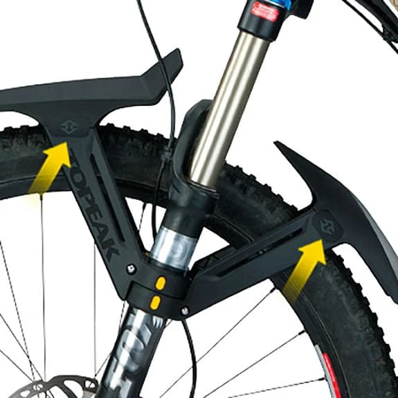 The Topeak DeFender XC1 / XC11 fender set is specially designed for 29 “wheeled bicycles.It is made of tough and flexible plastic that gives it great lightness while resisting impacts.The front fender is fixed on the fork of the bicycle and has 2 pieces to offer maximum protection, while the rear is fixed on the seatpost.