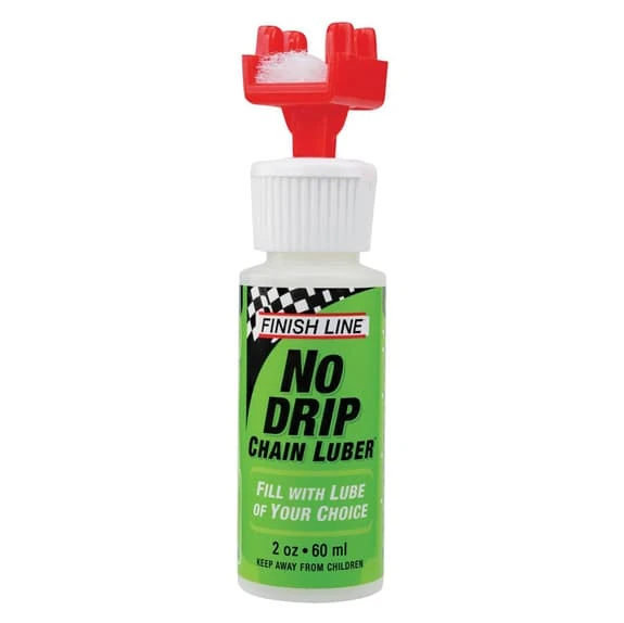Lubricant applicator Finish Line Chain No Drip that lubricates the chain of the bicycle in seconds without dirt or drops and avoiding waste. The No Drip works with any lubricant. It also works with degreaser to quickly and easily remove surface dirt from the chain.