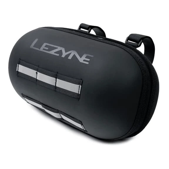 The 2.2 litre Lezyne Hard Bar Caddy handlebar bag has a robust EVA foam construction with a wide opening for easy access on the bike. Simple nylon straps with velcro secure it to a variety of bicycle handlebars. The bag is equipped with reflective details for greater visibility. An internal pocket adds extra organization in your main compartment.