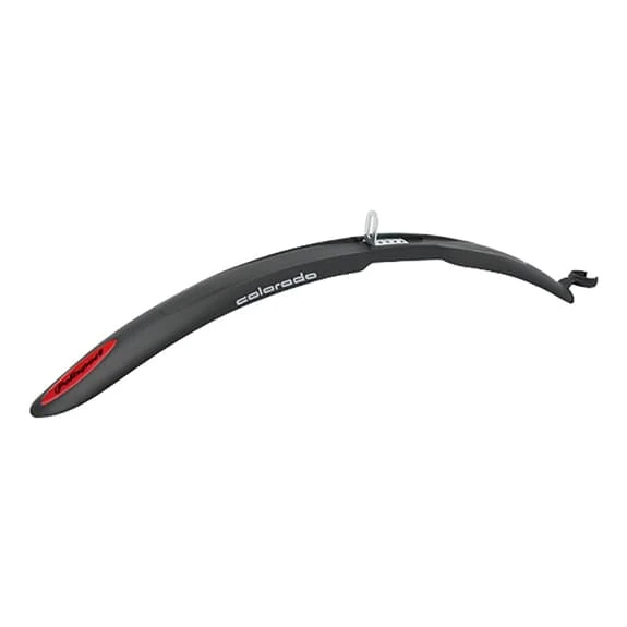The Polisport Colorado Mudguard Set is an adjustable L-shaped steel mudguard set for the front and rear mudguards that allows for different mudguard positions. To place the mudguard on the frame, you can choose between a long or short clamp depending on the space available.