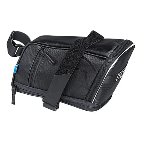The PRO seat bag Maxi Plus size has a large capacity bag with expandable compartment, logo and reflective band to make the cyclist more visible and is made of PVC-free material, respectful with the environment.