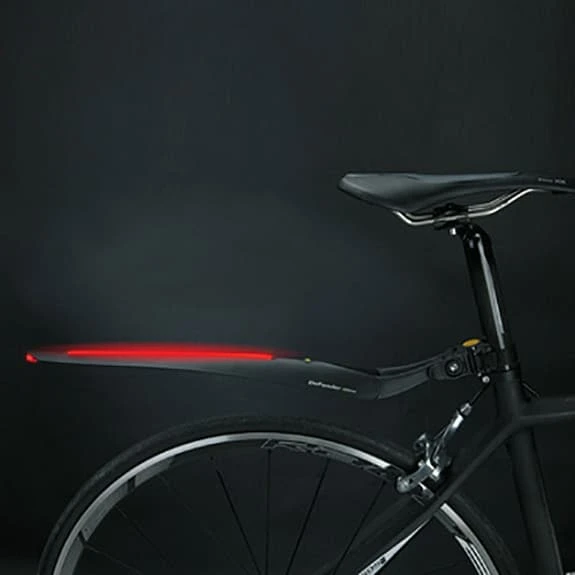 The Topeak Defender iGlow fender is designed to be used on road bicycles with wheels of 28 “It is made of resistant and flexible plastic that gives it a great lightness while it resists the impacts.It also has an easy assembly system that It does not require any tools, but its great difference with the rest of the mudguards lies in the fiber optic technology that it incorporates.This fiber allows the bag to be illuminated with red LED lights that increase the cyclist’s visibility and thus circulate with greater security.