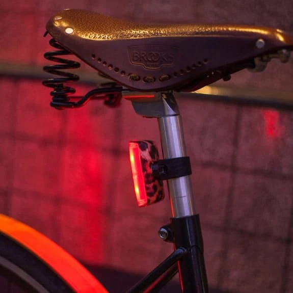 Knog POP I rear light with plastic housing, polycarbonate lens, anti-slip bottom and silicone strap. It is waterproof, offers side light, mounts without the need for tools, and has a low battery indicator. Replaceable strap in case of breakage.