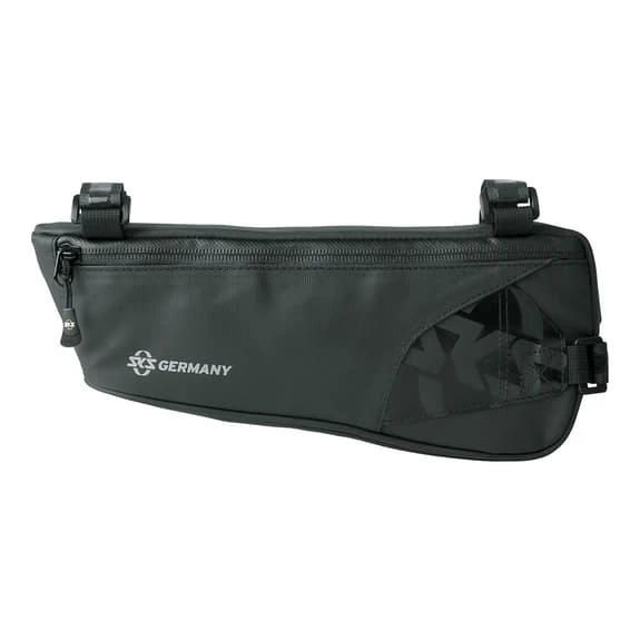 The durable material made with rubber and water-repellent makes the SKS Explorer Edge frame bag an essential companion for mountain bikers. Reflective elements like the SKS logo add security. As well as having plenty of room for tools, spare stems and belongings, this bag has an easyzip laminated zip, secure inside pocket and orange colour lining to make it easy to find things.