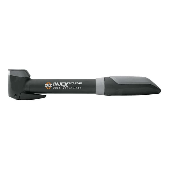 The SKS Injex Lite Zoom manual pump is a top-level compact pump with universal Multi-Valve Head connection – ideal for trekking and mountain bikes – thanks to the high volume per stroke. Grip with optimum ergonomics, telescopic function for high pressure, valve clamp lever and replaceable valve rubbers.