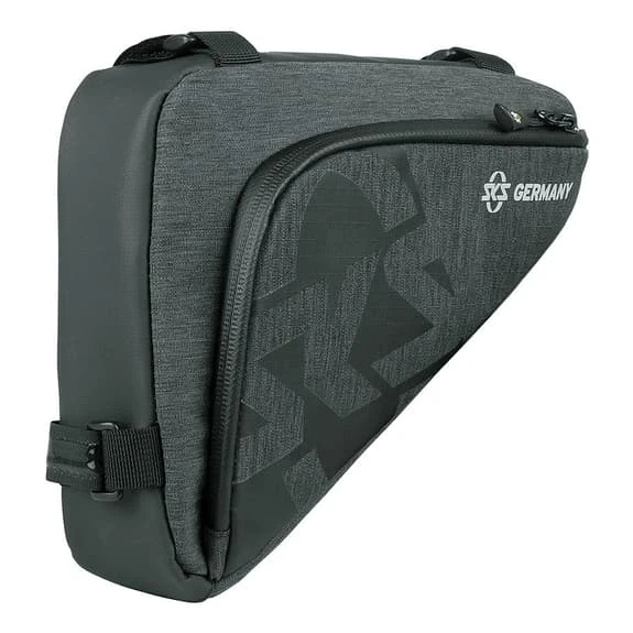 The SKS Traveller Edge frame bag is made with water-repellent material and combines design and function. It’s specifically designed for trekking and urban bikes. It offers plenty of space for keys, money and personal belongings. Reflective elements like the SKS logo add security. The elegant bag also has an easyzip laminated sip, secure interior pocket and orange colour lining to make it easy to find things.
