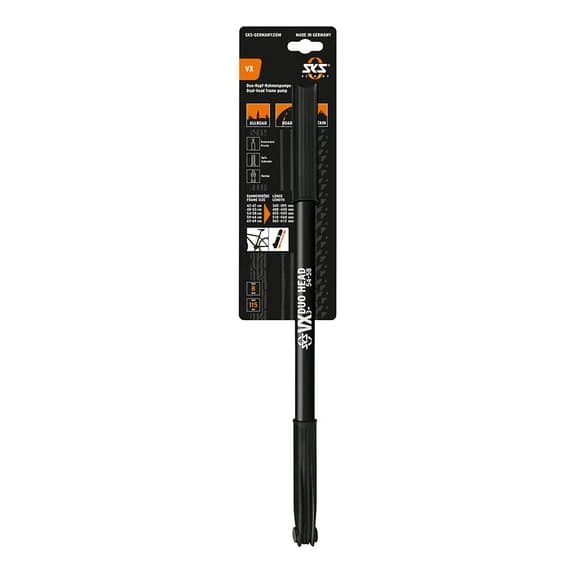 The SKS VX 505 mm is an extra lightweight frame pump with double head for all valves. High volume per stroke. Frame clamp clip-on.