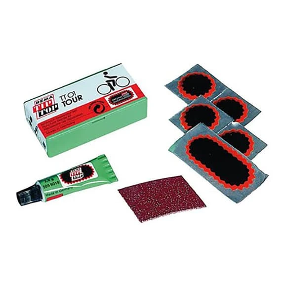 The Tip Top TT01 box of patches allows the repair of punctures in bicycle chambers thanks to its resistance and great sealing power.