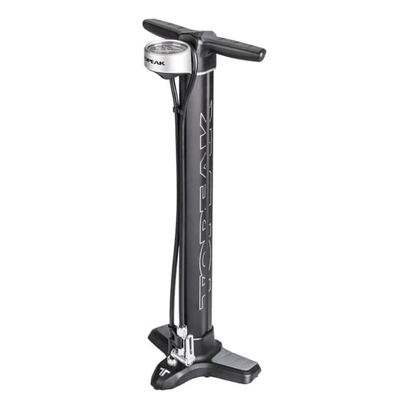 The Topeak Joeblow Twin Turbo Foot Pump will save you up to 50% of your time and effort. For more than 25 years, Topeak engineers have had a dream in mind, to create the ultimate foot pump. It must have a high pressure air outlet and massive volume delivery to fill road and MTB tyres easily and efficiently. TwinTurbo technology uses the pull and thrust of each hit by transferring air between its two barrels. Pulling the handle upward moves a large amount of air volume from the largest barrel to the smallest. Pushing the handle down compresses the air in the smaller barrel into a high pressure outlet that fills high pressure road tyres or high volume MTB tyres.