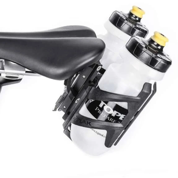 Designed specifically for saddle carrier mounting, the Tri-Cage Carbon is made from a carbon fibre reinforced engineering grade polymer, and the easy access ‘forward-release’ design helps prevent accidental drops when reaching back for a bottle. An integrated bottom mount for Ninja T Road tool case, Ninja CO2 inflater, or Ninja Pouch Road spare tube carrier makes it easy to carry the essentials. Holds bottles up to 750cc. (Recommended bottle diameter: 72mm- 74mm)