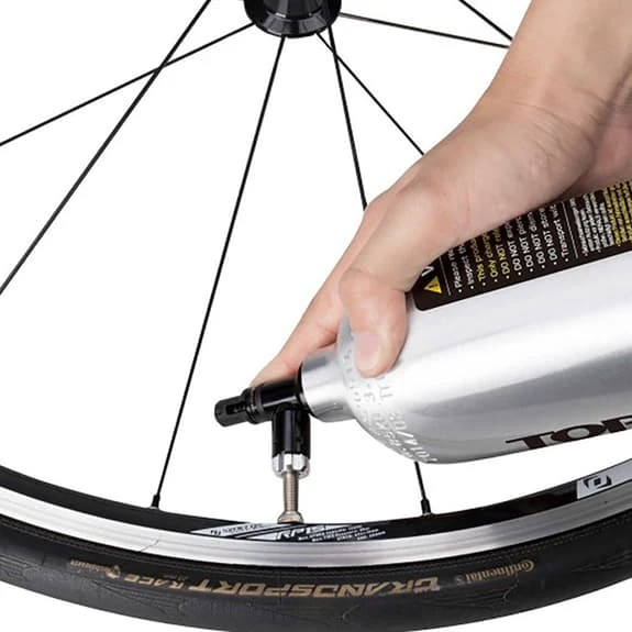 The Topeak TubiBooster Mini Air Compressor boasts a 2-in-1 design. This unique product works as a mini air compressor that allows any floor pump to compress air into this 1000cc aluminium air tank which quickly releases a high volume of air to mount tubeless tyre beads. The aluminium TubiBooster head also works as a CO2 inflater and compatible with Topeak threaded 16g/25g CO2 cartridges.