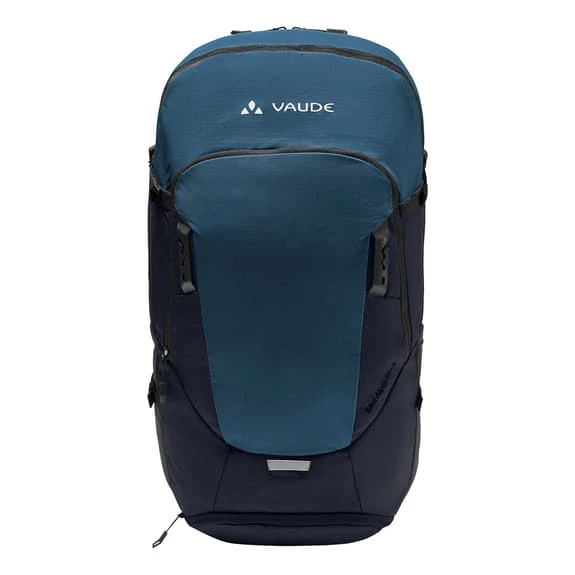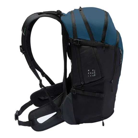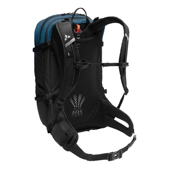 The Vaude Bike Alpin backpack, with a total capacity of 25+5 litres, allows you to expand its volume for MTB tours or multi-day excursions. The clever layout of its compartments, including one adapted to the use of extra jerry cans, will allow you to organise your equipment efficiently and easily. The back contact area is made of mesh fabric for constant ventilation while pedalling. Its many technical details, such as mesh side pockets or the possibility to expand its capacity by an extra 5 litres, make it an ideal choice for demanding and long routes. It is compatible with the use of hydration systems. Eco Finish is 100% fluorocarbon free. The Vaude Green Shape label stands for functional and environmentally friendly products made from sustainable materials.