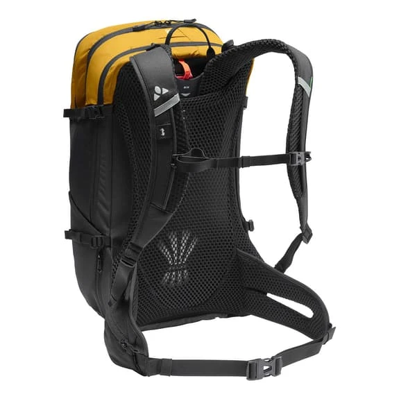 The Vaude Bike Alpin backpack, with a total capacity of 30+5 litres, allows you to expand its volume for MTB tours or multi-day excursions. The clever layout of its compartments, including one adapted to the use of extra jerry cans, will allow you to organise your equipment efficiently and easily. The back contact area is made of mesh fabric for constant ventilation while pedalling. Its many technical details, such as mesh side pockets or the possibility to expand its capacity by an extra 5 litres, make it an ideal choice for demanding and long routes. It is compatible with the use of hydration systems. Eco Finish is 100% fluorocarbon free. The Vaude Green Shape label stands for functional and environmentally friendly products made from sustainable materials.