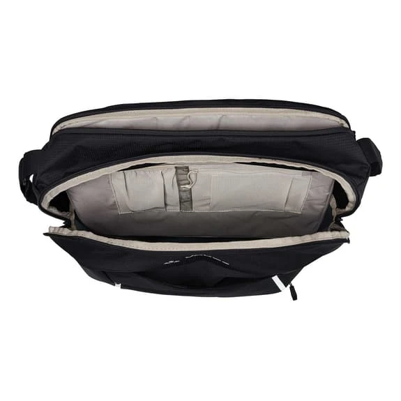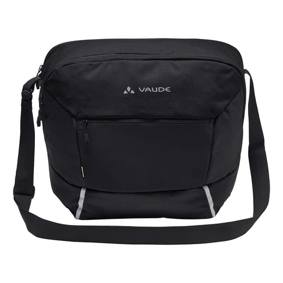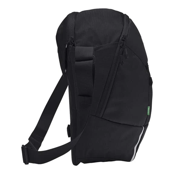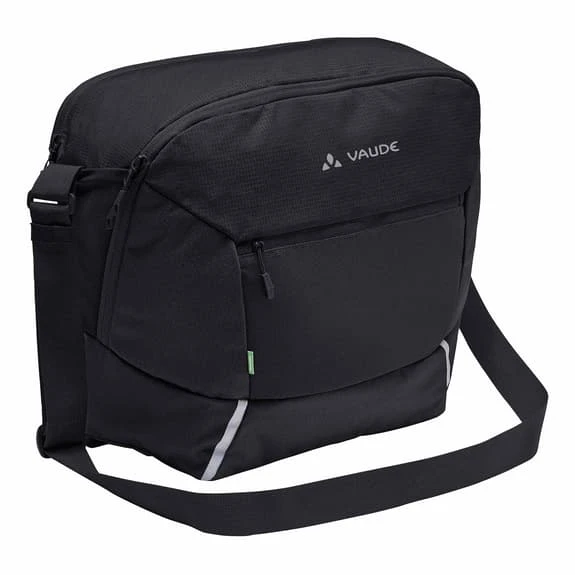 The Vaude Cycle Messenger L is designed to attach like a saddlebag to your pannier rack when you’re riding your bike home from work or meeting up with friends. It has a spacious main compartment and a special pocket for laptops up to 13.3″. In addition to its many technical details, this shoulder strap features the QMR 2.0 attachment system, which adapts to round pannier rack tubes with diameters of 8-16 mm. It has a waterproof cover so rain is no problem. The Eco Finish is 100% fluorocarbon free. The Vaude Green Shape label stands for functional and environmentally friendly products made from sustainable materials.