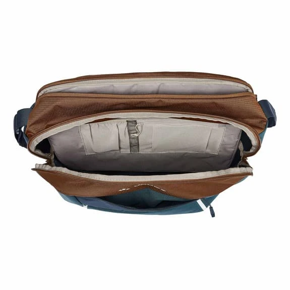 The Vaude Cycle Messenger L is designed to attach like a saddlebag to your pannier rack when you’re riding your bike home from work or meeting up with friends. It has a spacious main compartment and a special pocket for laptops up to 13.3″. In addition to its many technical details, this shoulder strap features the QMR 2.0 attachment system, which adapts to round pannier rack tubes with diameters of 8-16 mm. It has a waterproof cover so rain is no problem. The Eco Finish is 100% fluorocarbon free. The Vaude Green Shape label stands for functional and environmentally friendly products made from sustainable materials.