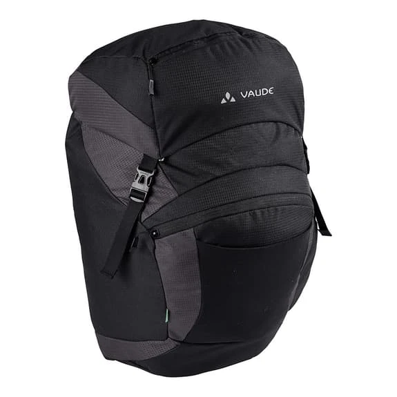 The Vaude OnTour Front saddlebag, with a capacity of 16 litres, offers the possibility of storing your luggage safely thanks to its robustness. Designed as a front pannier, it has an easy-to-manage main compartment, as well as a zippered compartment with internal organizer to properly stow your gear for the ride. Includes the QMR 2.0 fixing system, adaptable to tubes up to 16 mm in diameter with key. This product is made with Eco Finish, an environmentally friendly, fluorocarbon free, water repellent (PFC free) finish. The Vaude Green Shape label is synonymous with ecological and functional products made from sustainable materials.