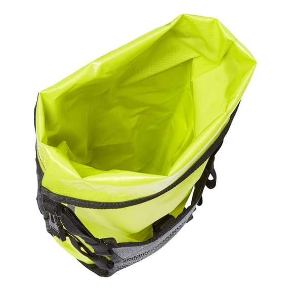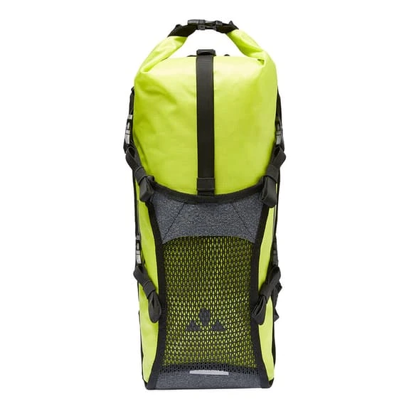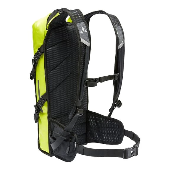 The Vaude Trailpack II backpack, with 8 liters of volume, is waterproof and very versatile, with an unlimited range of uses. It’s as good for bikepacking as it is for Gravel, plus it functions as an everyday backpack. The main compartment is 100% waterproof, welded and has a roll closure. Attaches at the lower back and sides so that additional gear or a 2 L volume hydration pack can be stored in the space at the top. Behind the front flap, with two compression straps, there is space for a helmet, vest or other equipment. Valuables can be safely stored in the small zippered pocket on the back. Reflective prints on the front and sides of the backpack increase your visibility in low light conditions. Both the waterproof main compartment and the front flap are made from 100% recycled materials. The recycled material of the bluesign-certified Trailpack II is manufactured with Eco Finish, an environmentally friendly, water-repellent process that does not use fluorocarbons (PFCs).