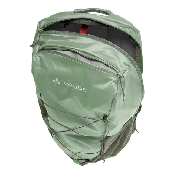 The Vaude Uphill backpack, with a 16 litre capacity, is a simple accessory so you can enjoy your cycling routes with the peace of mind of having your basic equipment well protected and organised. Its light weight and many technical details make it an excellent choice for storing your tools, spare parts, power and even your hydration system. It has a breathable suspension system to avoid annoying bumps on the trail, and ErgoShape shoulder straps for optimal freedom of movement. It has a waterproof cover with a hook to install a light. The Eco Finish is 100% fluorocarbon free. The Vaude Green Shape label stands for functional and environmentally friendly products made from sustainable materials.