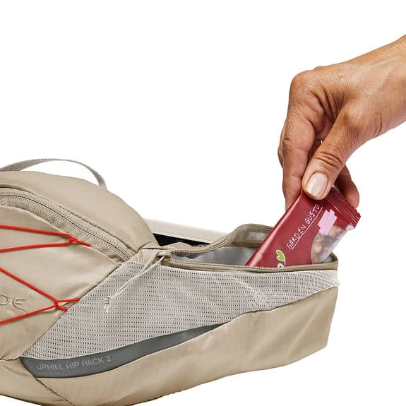 The Vaude Uphill waist bag, with a 2 litre capacity, is designed to keep your essentials close at hand on your cycling adventures. It is very lightweight and has 3 separate compartments and a waterproof cover for those times when rain makes an appearance.