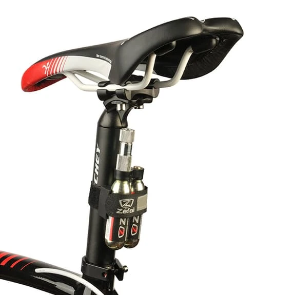 The Zéfal CO2 inflator kit with cartridge storage works for all sizes. The cartridge storage ensures a good grip and won’t scratch. Suitable for 2 16 g threaded cartridges and 1 CO2 pump (such as our EZ Control).